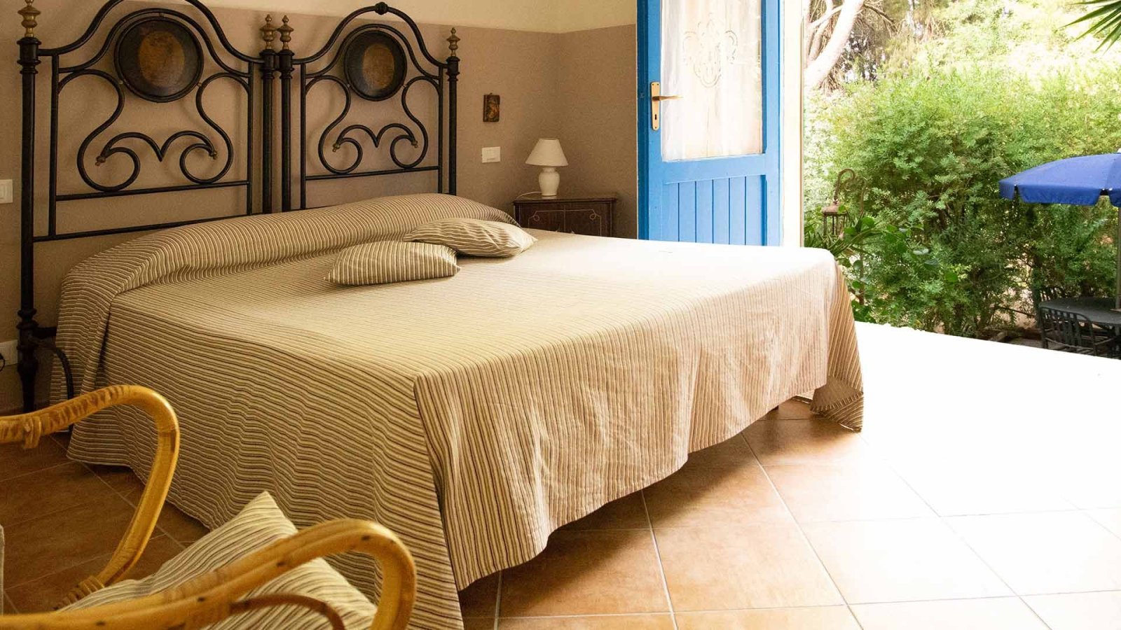 Ampi bilocali con doppio accesso, dal giardino e dalla corte interna, dotati di camera matrimoniale, soggiorno con letti singoli e angolo cottura, bagno e veranda