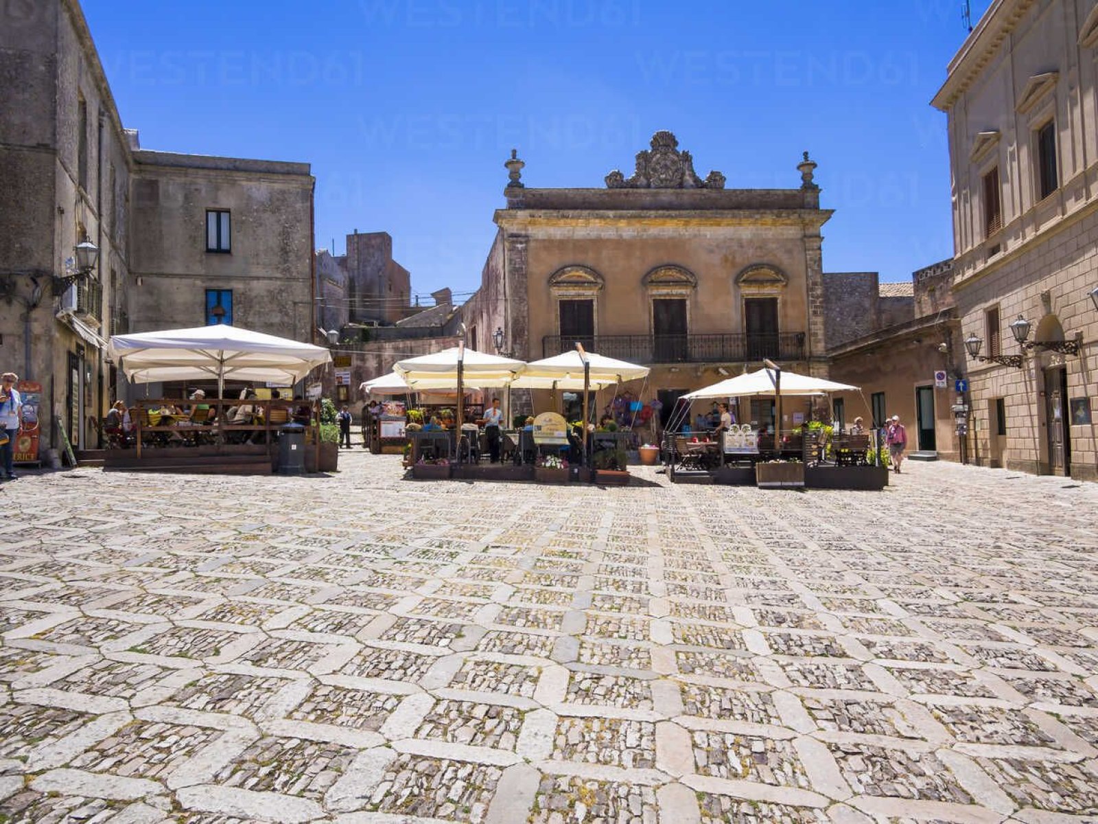 Piazza Umberto I è situata nella zona alta della città, alla fine di Corso Vittorio Emanuele.E' sorprendente scoprire l'ampiezza di questa piazza dopo aver girato per le stradine strette e tortuose del centro storico, il cui silenzio è rotto dal suo andirivieni di turisti. La Piazza alla fine del 1800 subì diversi lavori d'ampliamento che ne modificarono l'assetto. Scomparsi i portici e la torre del Palazzo Giurato, oggi sede del Comune, assunse quell'aspetto geometrico regolare che oggi la contraddistingue. Piazza Umberto I, di tipica struttura medievale, offre il più vivace ambiente della città; è un buon posto per sedersi e rilassarsi in uno dei suoi molteplici caffè, gelaterie o bar all'aperto. L'edificio più importante in questa piazza è il Palazzo Comunale, che ospita la biblioteca e che è il risultato delle modifiche subite da quello che una volta era il teatro della città. La biblioteca è intitolata a Vito Carvini e racchiude oltre 20.000 volumi con antichi manoscritti e incunaboli.