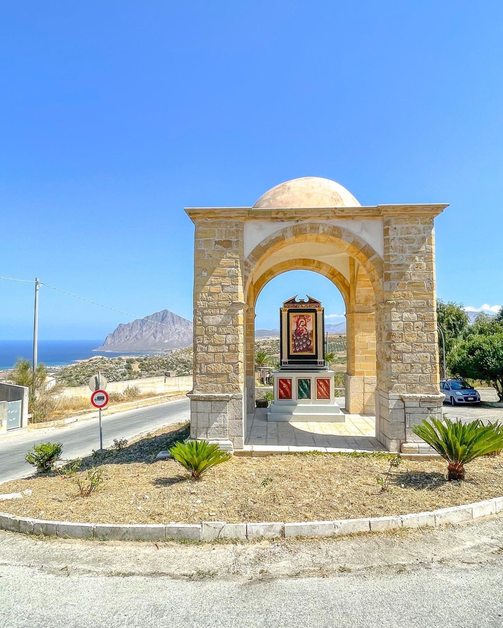 Lungo la strada che un tempo da Erice portava a Custonaci, nella ex trazzera del cavaliere Rizzuto o via del Cavaliere, nei pressi di un antico abbeveratoio, si elevano i resti (ora molto manomessi e restaurati) di una cappella destinata ad accogliere il quadro della Madonna di Custonaci (sec. XVI), durante i trasporti da Custonaci ad Erice e viceversa, documentati dal 1568 al 1936. In origine aveva pianta quadrata e struttura aperta su ogni lato da una grande arcata. La copertura a piccola cupola era sostenuta da quattro robusti pilastri, soluzione quattro-cinquecentesca rielaborata dalle edicole quadrate con cupola, derivanti dai padiglioni arabo-normanni. Qui sostavano, si rinfrescavano e si rifocillavano con pane e formaggio i fedeli durante i “trasporti”. Gli abitanti del luogo offrivano del cibo ai portatori della sacra immagine, che si erano sottoposti ad una dura fatica.