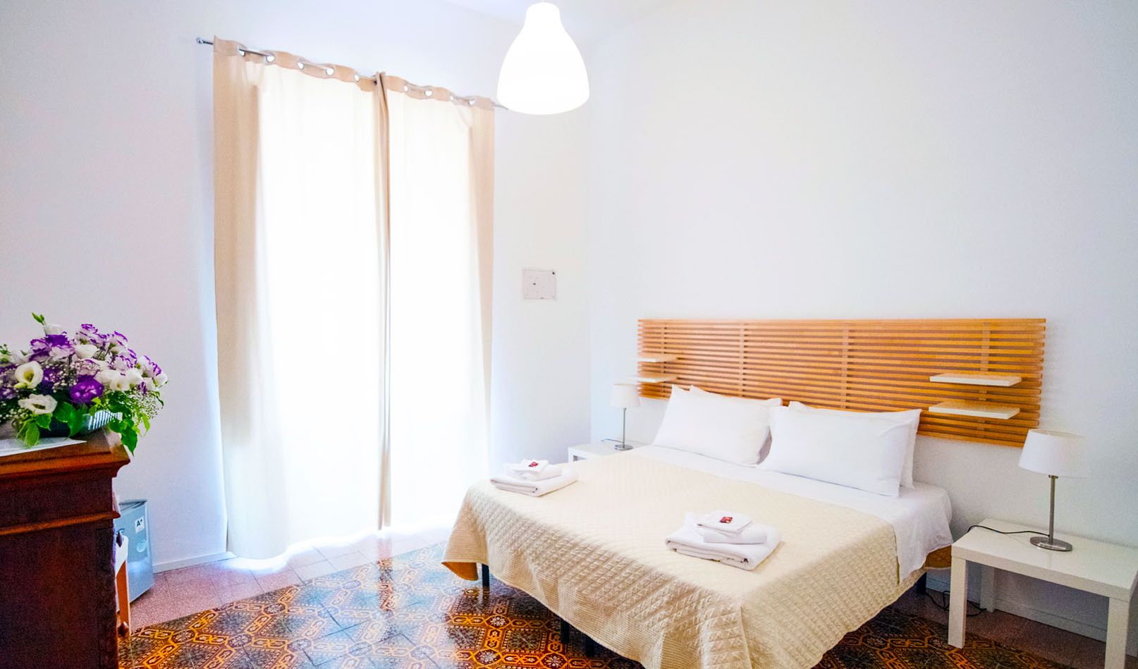 Luminose e dagli spazi ampi e confortevoli, le nostre camere matrimoniali sono dotate di tutti i comfort per un piacevole soggiorno con vista sulle tipiche stradine del centro storico trapanese, sulle quali vi affaccerete da un grazioso balcone. Ciascuna con un moderno bagno interno, completo di doccia e curato nei dettagli – con prodotti da bagno, phon e teli le camere dispongono di un letto matrimoniale che ( previa richiesta ) può essere separato in due comodi letti singoli.