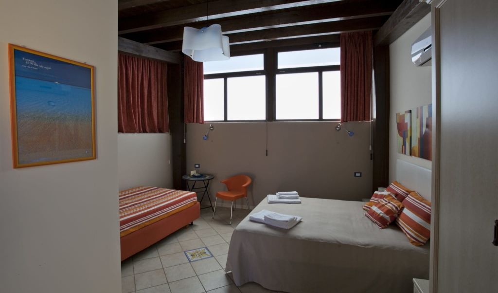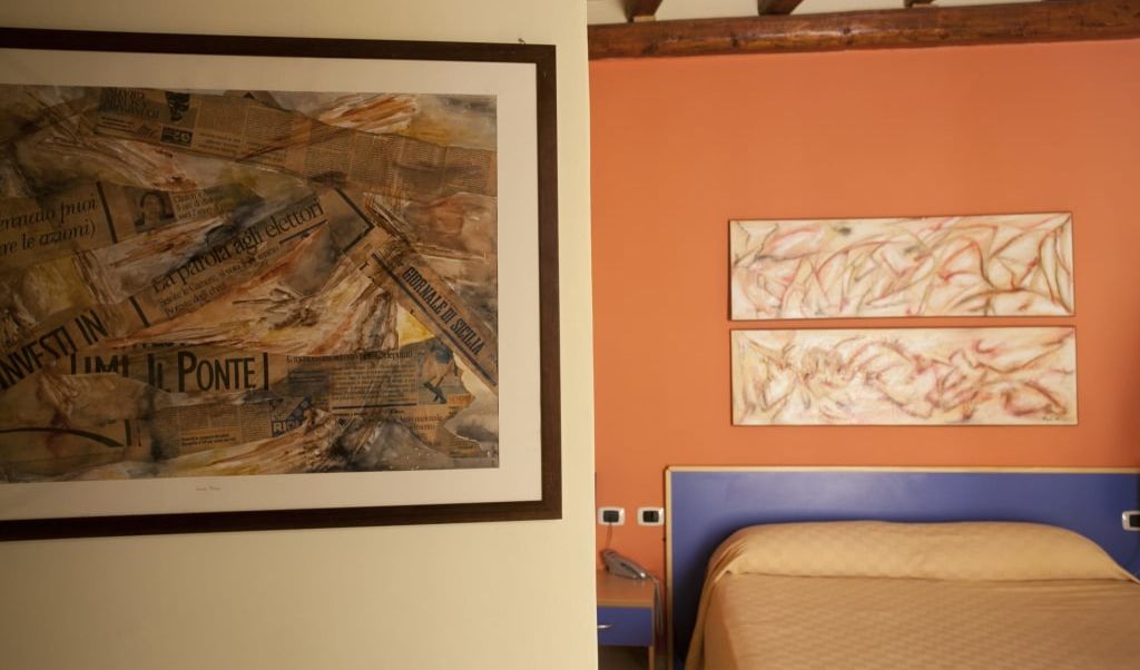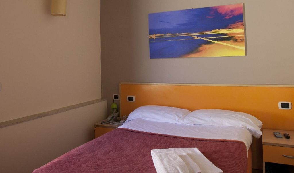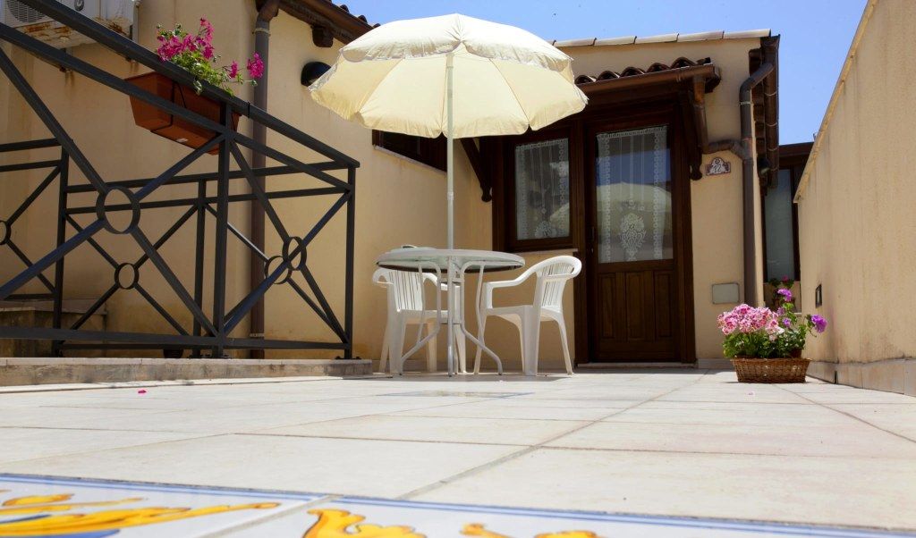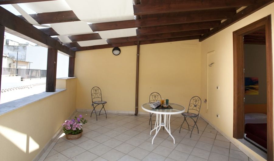 Camera singola con letto alla francese con bagno privato interno, dotata di tutti i comfort (Aria condizionata, Wi-Fi, asciugacapelli ecc ecc) con utilizzo esclusivo di terrazzino di pertinenza con arredamento da esterno.