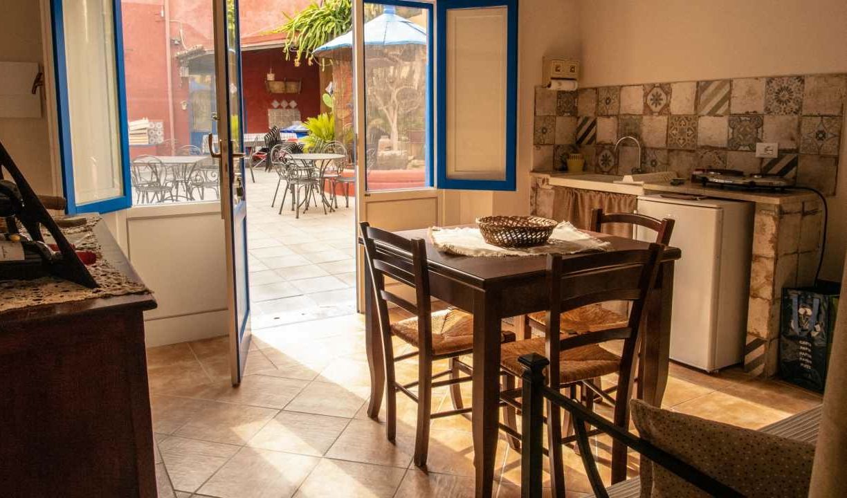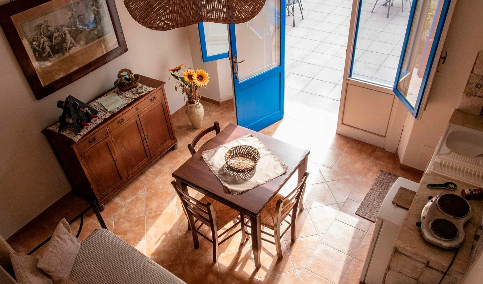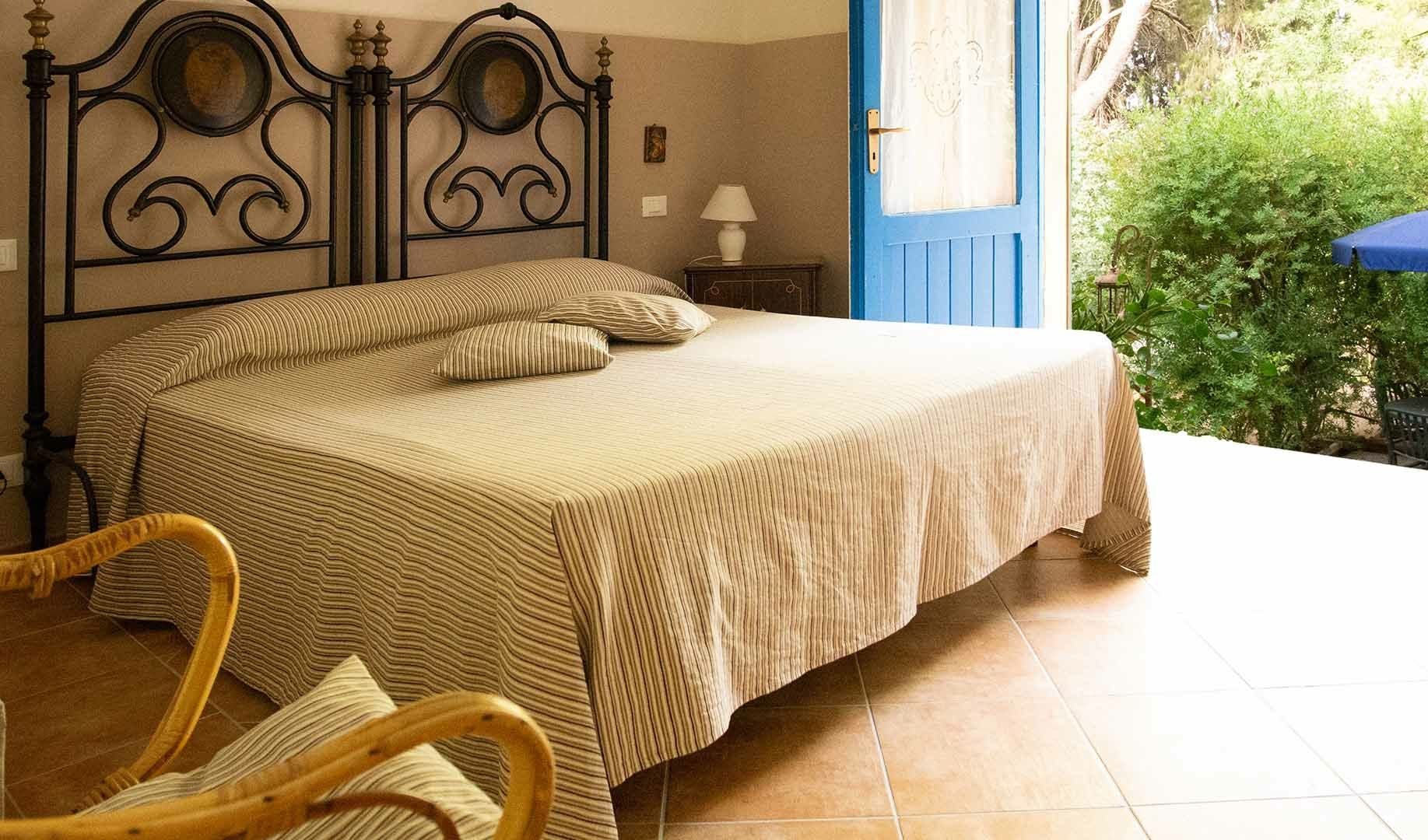 Ampi bilocali con doppio accesso, dal giardino e dalla corte interna, dotati di camera matrimoniale, soggiorno con letti singoli e angolo cottura, bagno e veranda